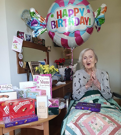 Staff at Bruce Lodge pulled out all the stops to give Mary a memorable birthday, despite lockdown.